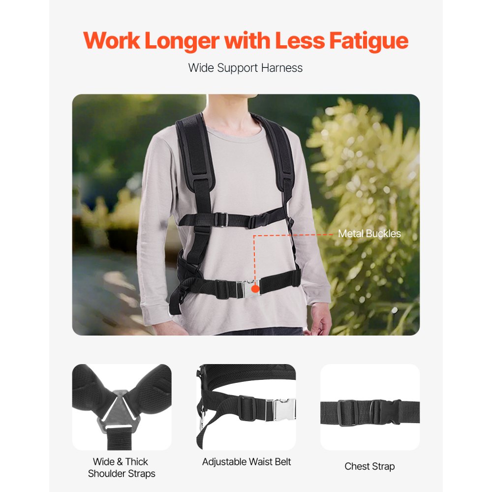 Vylepšené popruhy: Zesílené a rozšířené ramenní popruhy teleskopické tyče tlakové myčky a další hrudní popruh poskytují lepší oporu a rozložení tlaku. Rozsah nastavení je rozšířen, takže si můžete přizpůsobit délku, která vám vyhovuje. Kovové přezky zajišťují, že ramenní popruhy jsou pevné, odolné a snadno se neroztrhnou.