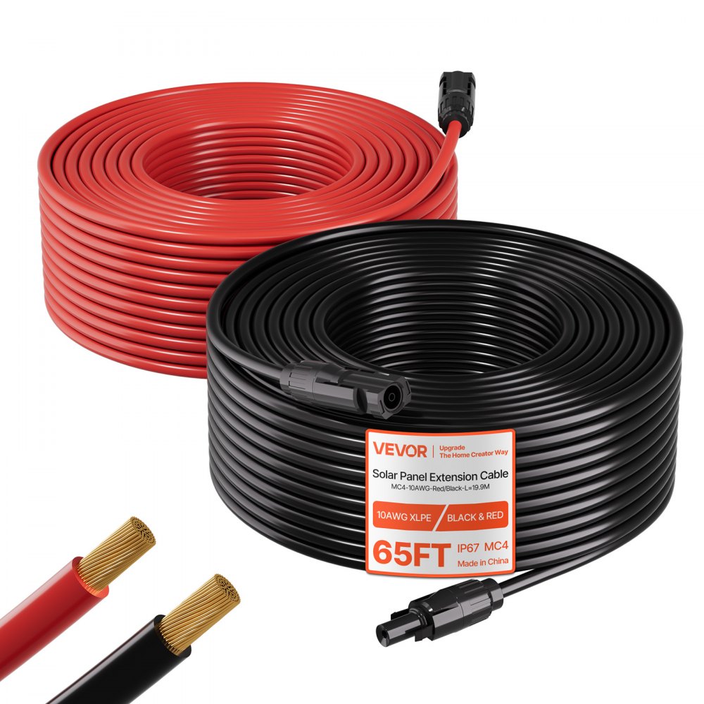 Prodlužovací kabel pro solární panely VEVOR, 19,81 m černý + 19,81 m červený, 10 AWG (6 mm²), vodič pro solární panely s konektory samice a samec, vodotěsný pocínovaný měděný drát s certifikací IP67, pro venkovní fotovoltaické systémy | Elektrotechnika | Originalnitextil.cz
