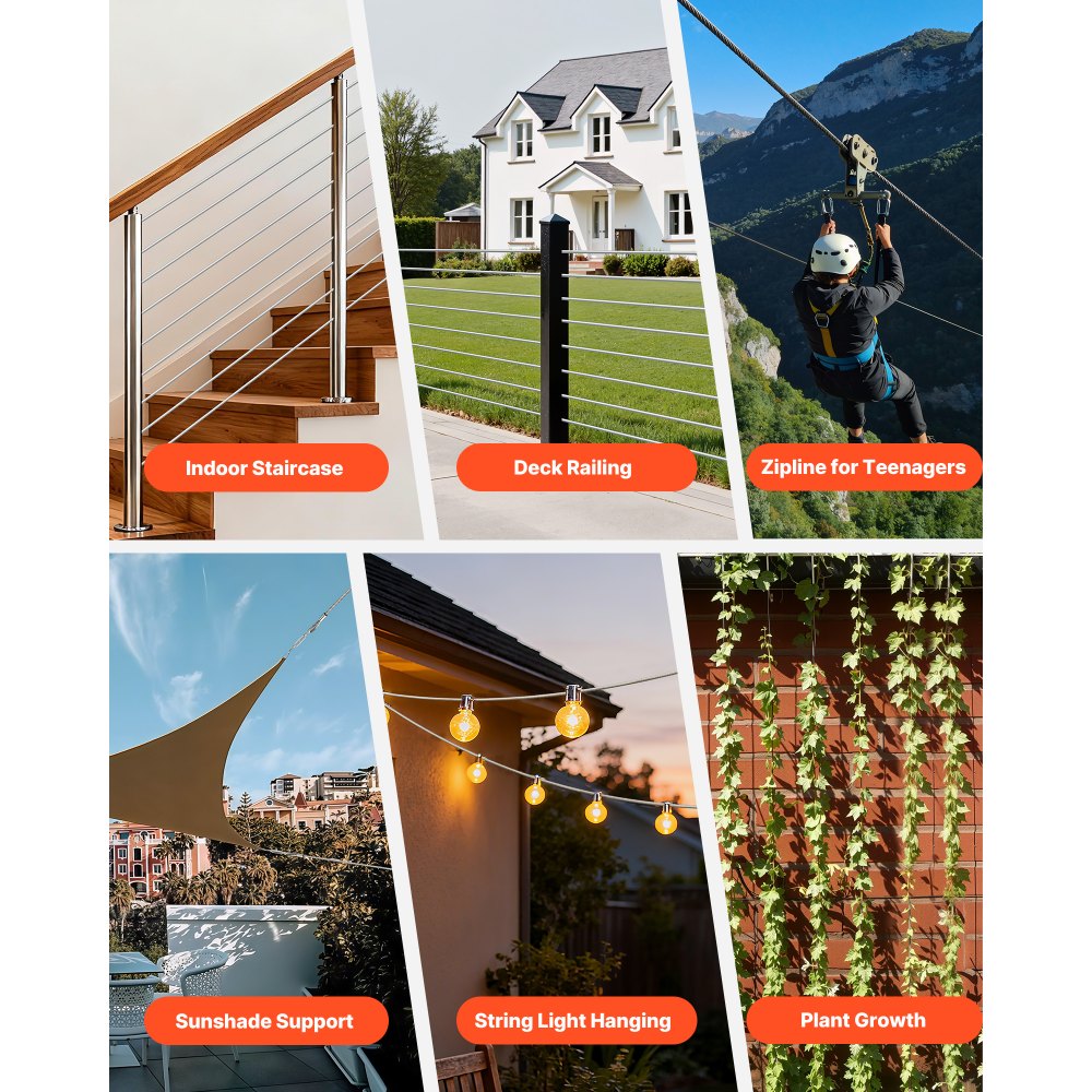 Široké použití: Tento pletený drát se hodí na zábradlí schodů, zahradní ploty, světelná řetězy, šňůry na prádlo, treláže z vinné révy, závěsy na krmítka pro ptáky a další. S jednou rolí pokryjete více domácích i venkovních úkolů.