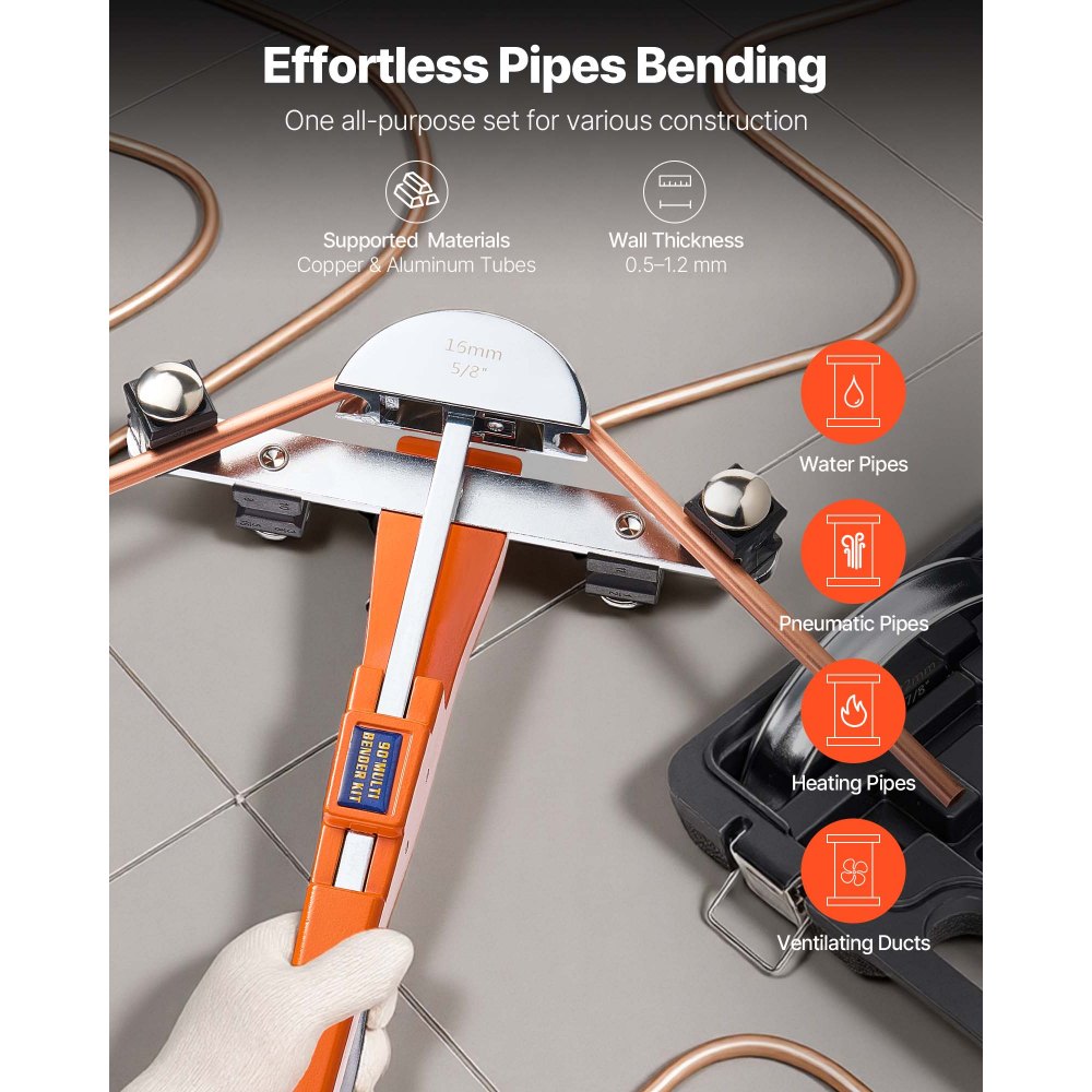 Připraveno na každý ohyb: Tato ohýbačka měděných trubek je ideální pro systémy HVAC, údržbu chlazení, opravy automobilů, instalatérské práce a další.