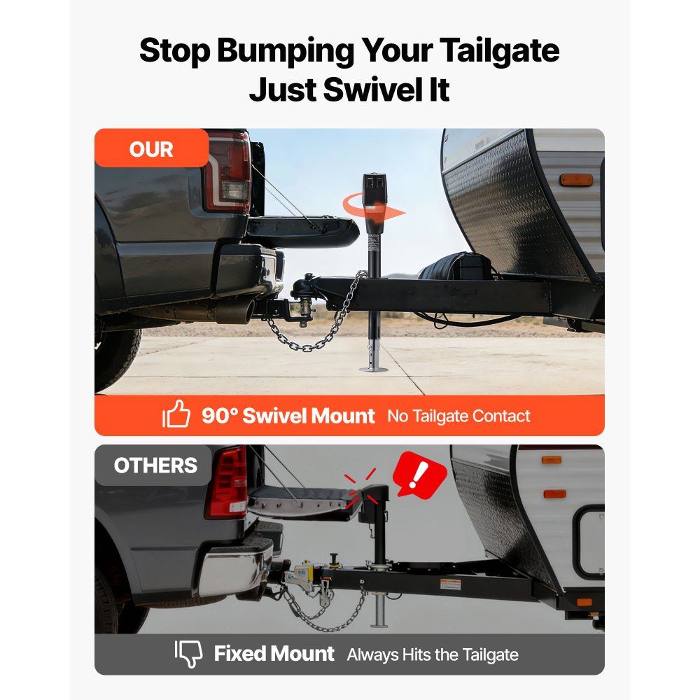 Spolehlivá práce v náročných podmínkách: Tento elektrický zvedák přívěsu se pyšní nosností 5 000 liber (≈2 268 kg) a poskytuje stabilní zdvih pro přívěsy lodí a vybavení, takže připojení je spolehlivé a příprava na tažení bez stresu.