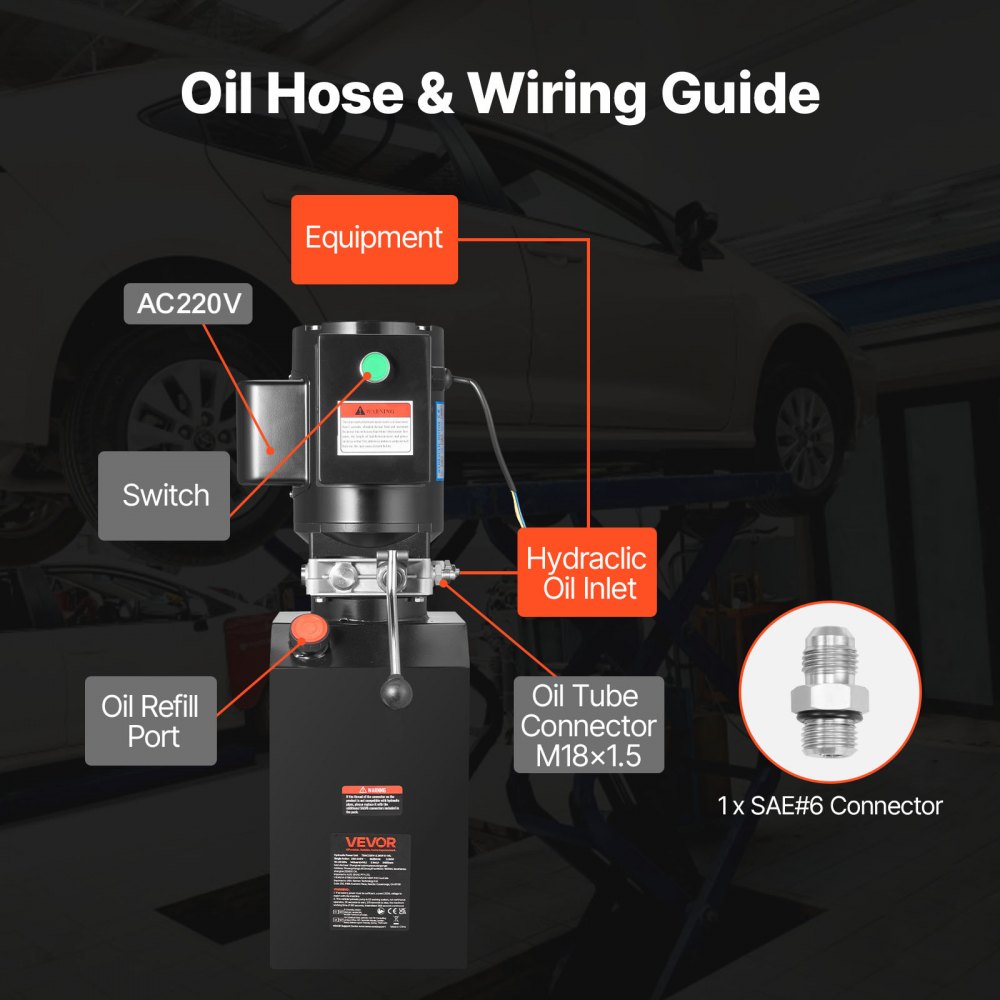 Hydraulický agregát VEVOR 14 l, jednočinné ocelové čerpadlo pro sklápěcí přívěsy, maximální přetlak 22 MPa a průtok 6,3 l/min, hydraulické čerpadlo 220–240 V s kovovou nádrží pro zvedání sklápěcích přívěsů | Auto-moto | Originalnitextil.cz