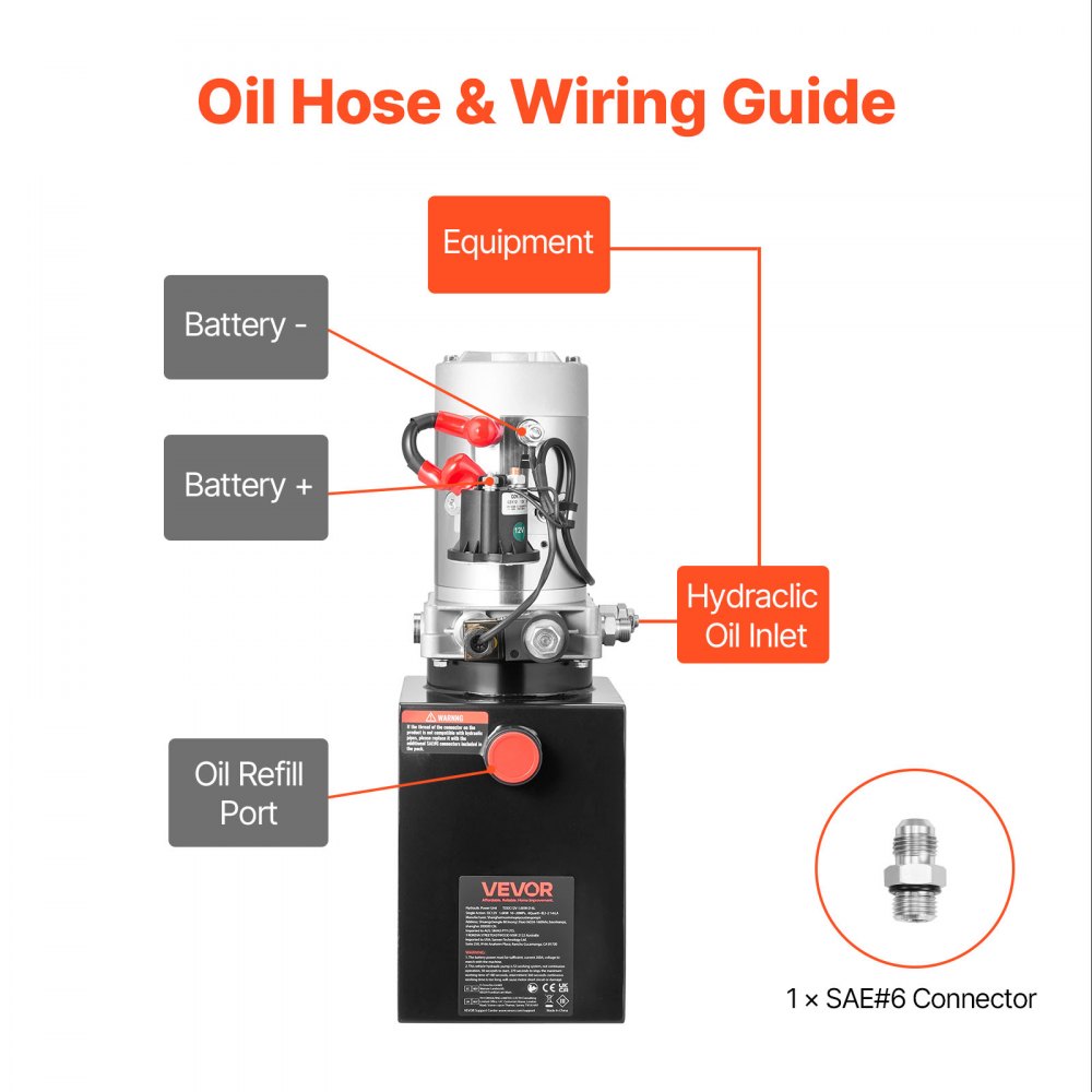 Snadná instalace: Toto čerpadlo pro sklápěcí přívěs se dodává předem smontované. Doplníte hydraulický olej, připojíte napájecí kabely a hadice a můžete vyrazit. Spojky SAE #6 vám pomohou rychle připojit standardní hydraulické potrubí.