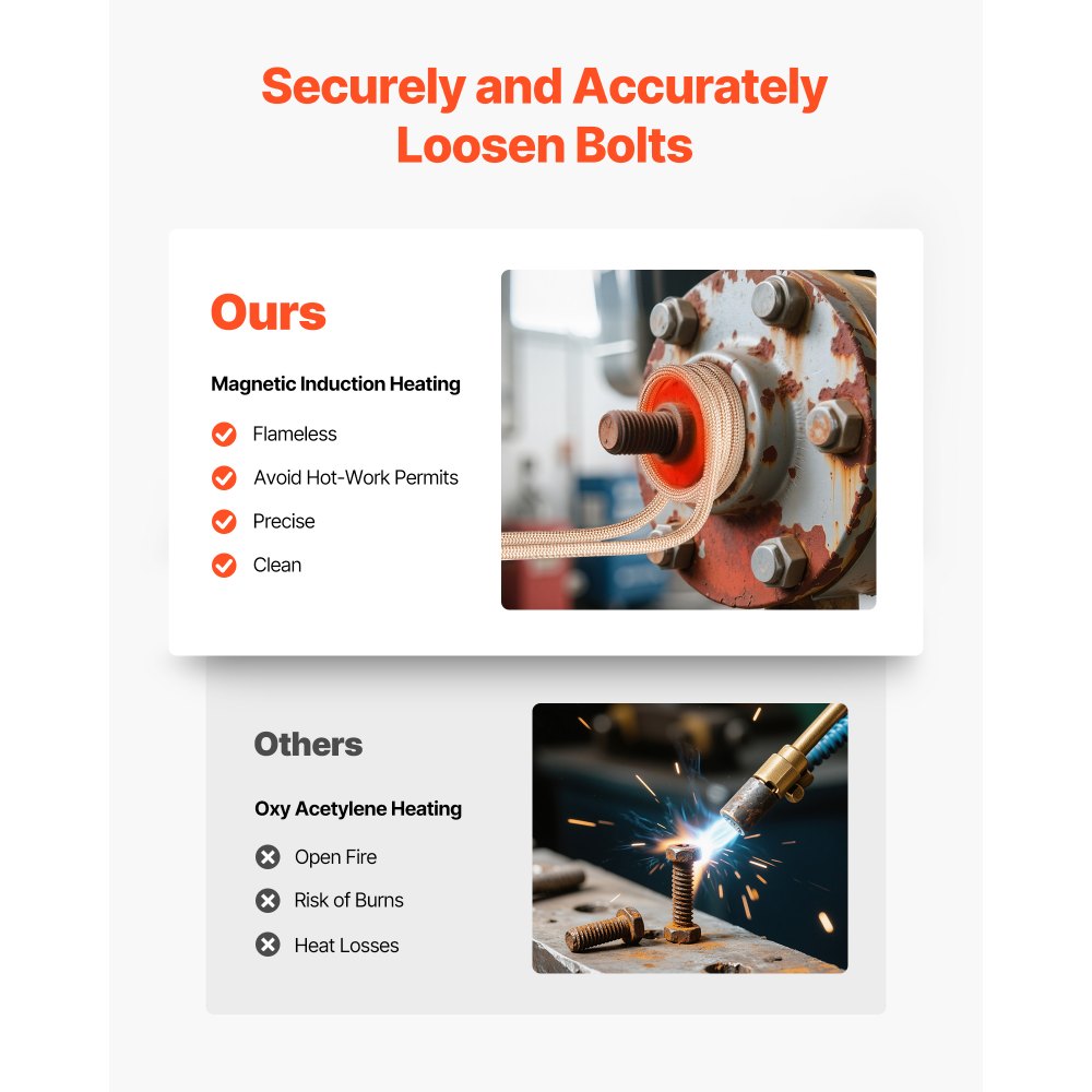 Široké použití: Tento ohřívač šroubů je vhodný pro použití při opravách automobilů a mechanické údržbě. Je ideální pro ohřev zaseknutých, zrezivělých nebo zamrzlých šroubů, vrutů, ložisek, ozubených kol a malých kovových součástí, včetně zamrzlých spojovacích prvků soustruhů.