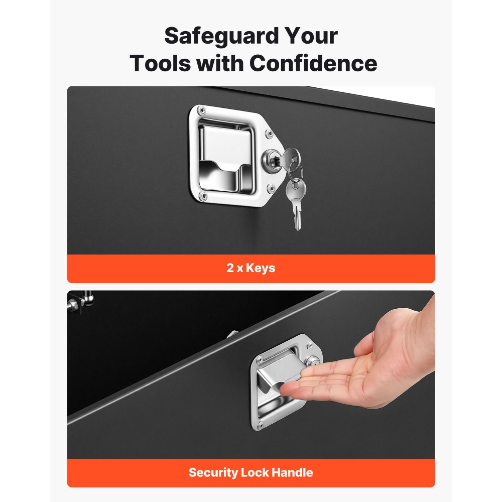 Krabice na nářadí VEVOR s okem přívěsu, ocelová krabička na nářadí s okem přívěsu 1245 x 353 x 470 mm, odolný úložný organizér se zámkem a klíči, krabička na nářadí pro korbu pick-upu, obytného vozu, SUV, terénního vozidla, černá