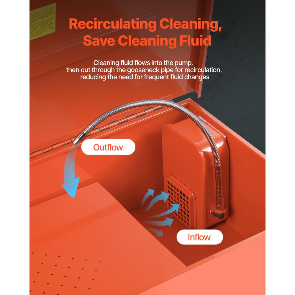Flexibilní husí krk: Zakřivený husí krk našeho čističe automobilových dílů lze nastavit tak, aby čisticí kapalina mohla plně protékat po povrchu dílů, což usnadňuje oplachování těžkých dílů. Dokáže rozpustit mastnotu, nečistoty a olej ze součástí motoru.