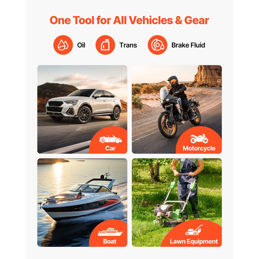 Široká kompatibilita: Tento odsávač kapalin zvládne motorový olej, chladicí kapalinu, brzdovou kapalinu a převodovou kapalinu. S jedním praktickým nástrojem můžete opravit automobily, nákladní automobily, motocykly, lodě a zahradní techniku.