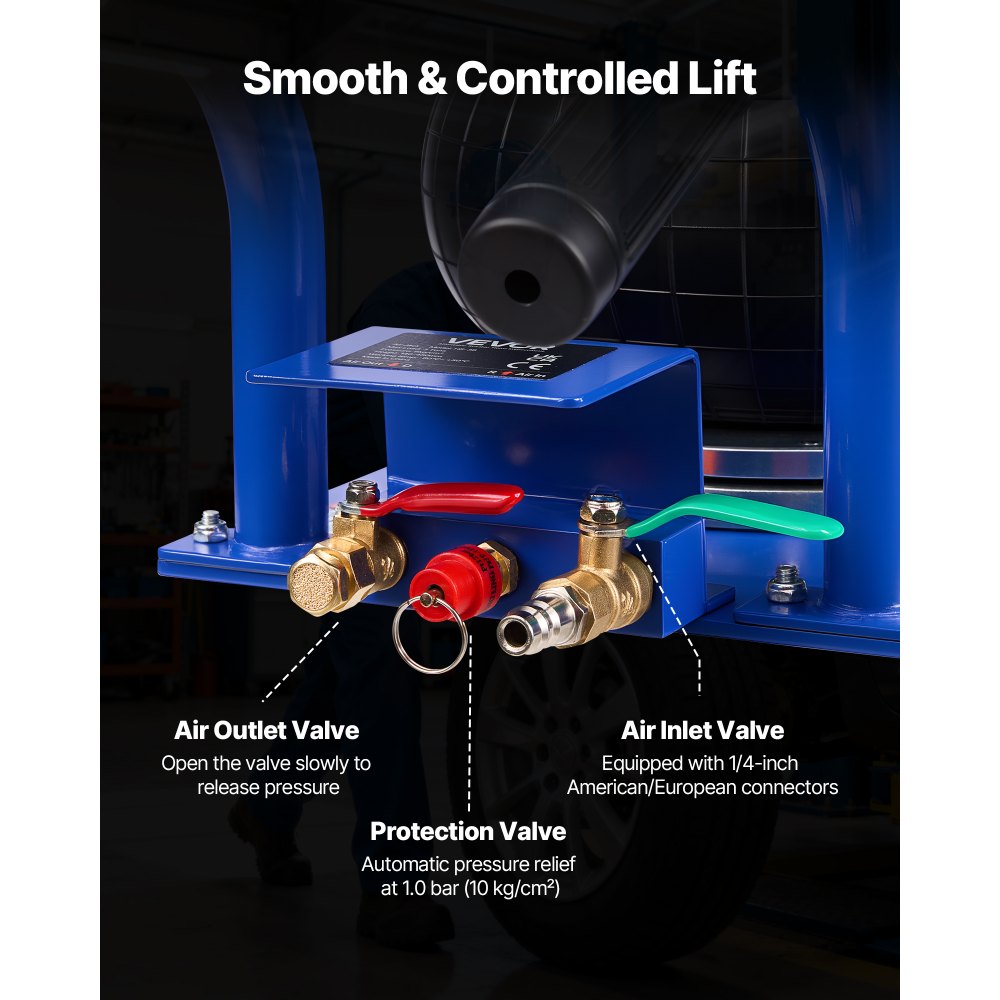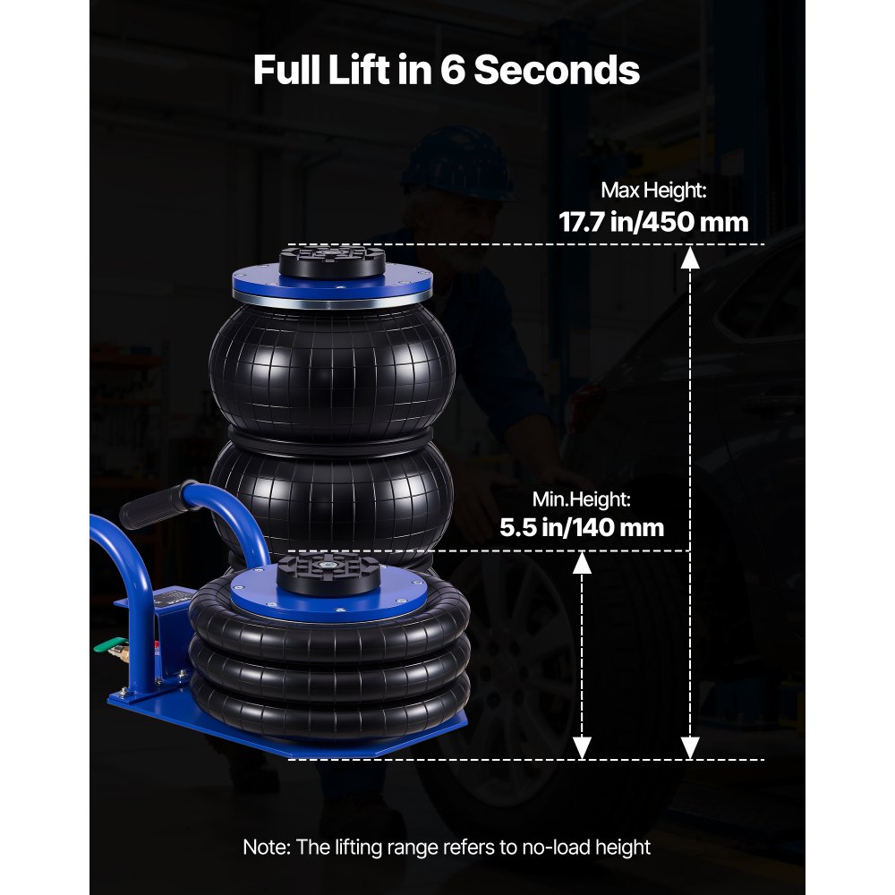Rychlé zvedání vzduchem během několika sekund: Pneumatický zvedák zvedne bez zatížení 140–450 mm. Po připojení ke vzduchovému kompresoru zvedne váš vůz za 1–6 sekund, což je skvělé pro výměnu pneumatik, opravy podvozku a výměnu oleje. Pro dlouhou oporu použijte zvedák.