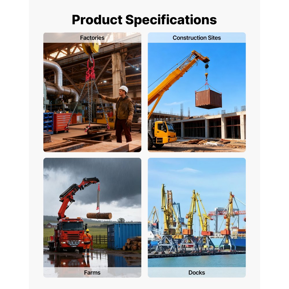 Všestranné použití: Tento čtyřpramenný řetězový závěs je ideální pro staveniště, továrny, sklady, mechanickou přepravu, stavbu lodí a projekty zvedání těžkých břemen. Víceúčelový řetěz pro širokou škálu úkolů.