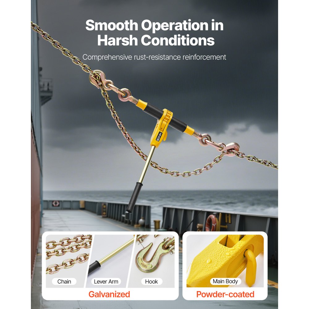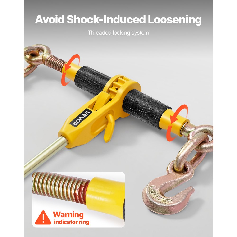Kompatibilita a přizpůsobivost: Řetězový vázací mechanismus obsahuje 12,8 stop dlouhý řetěz G80 (průměr 5/16 palce) a podporuje řetězy o průměru 5/16 palce až 3/8 palce. Nastavitelná rozteč háků (23,2-30,7 palce) je vhodná pro nákladní automobily, jeřáby a pick-upy, ideální pro zajištění dřeva, vybavení a dalších věcí.