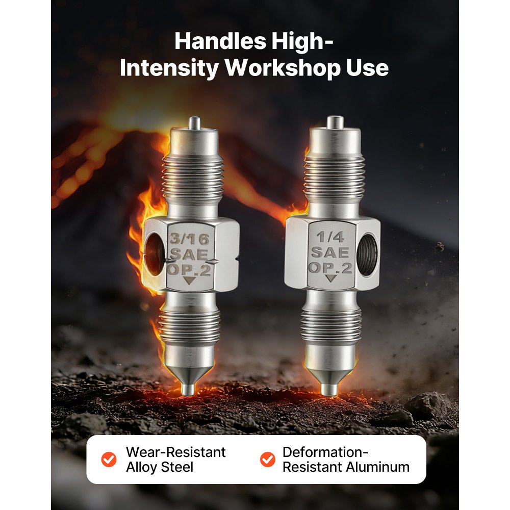 Sada nástrojů VEVOR pro rozšířené brzdové potrubí, nástroj pro jednoduché a dvojité rozšíření 45° pro měděné trubky 4,75 mm a 6,35 mm - se 2 tvarovacími matricemi, nástrojem pro odhrotování a sadou nástrojů pro opravy hydraulického brzdového potrubí automobilů