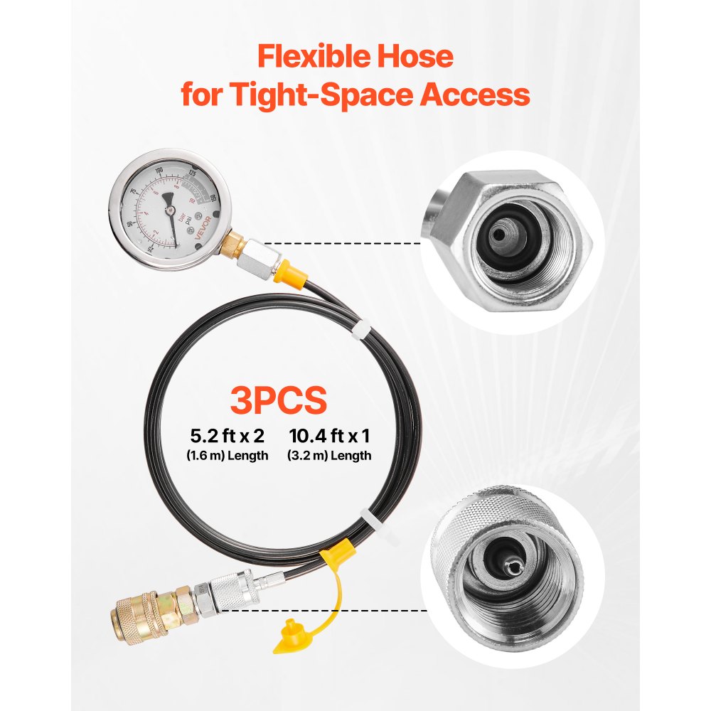 Sada pro hydraulickou tlakovou zkoušku VEVOR, 10/60/160/400/600 barů (150/900/2300/6000/9000 PSI), sada hydraulických manometrů 5 manometrů 20 spojek 4 rychlospojky 3 hadice pro bagry a stavební stroje | Auto-moto | Originalnitextil.cz