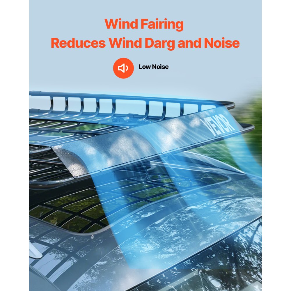 Snižuje hluk a odpor větru: Plot vysoký 10 cm má šikmý přední panel, který vyhlazuje proudění vzduchu a snižuje hluk a odpor větru. Tento držák zavazadel na střechu auta chrání váš náklad před poškozením větrem.