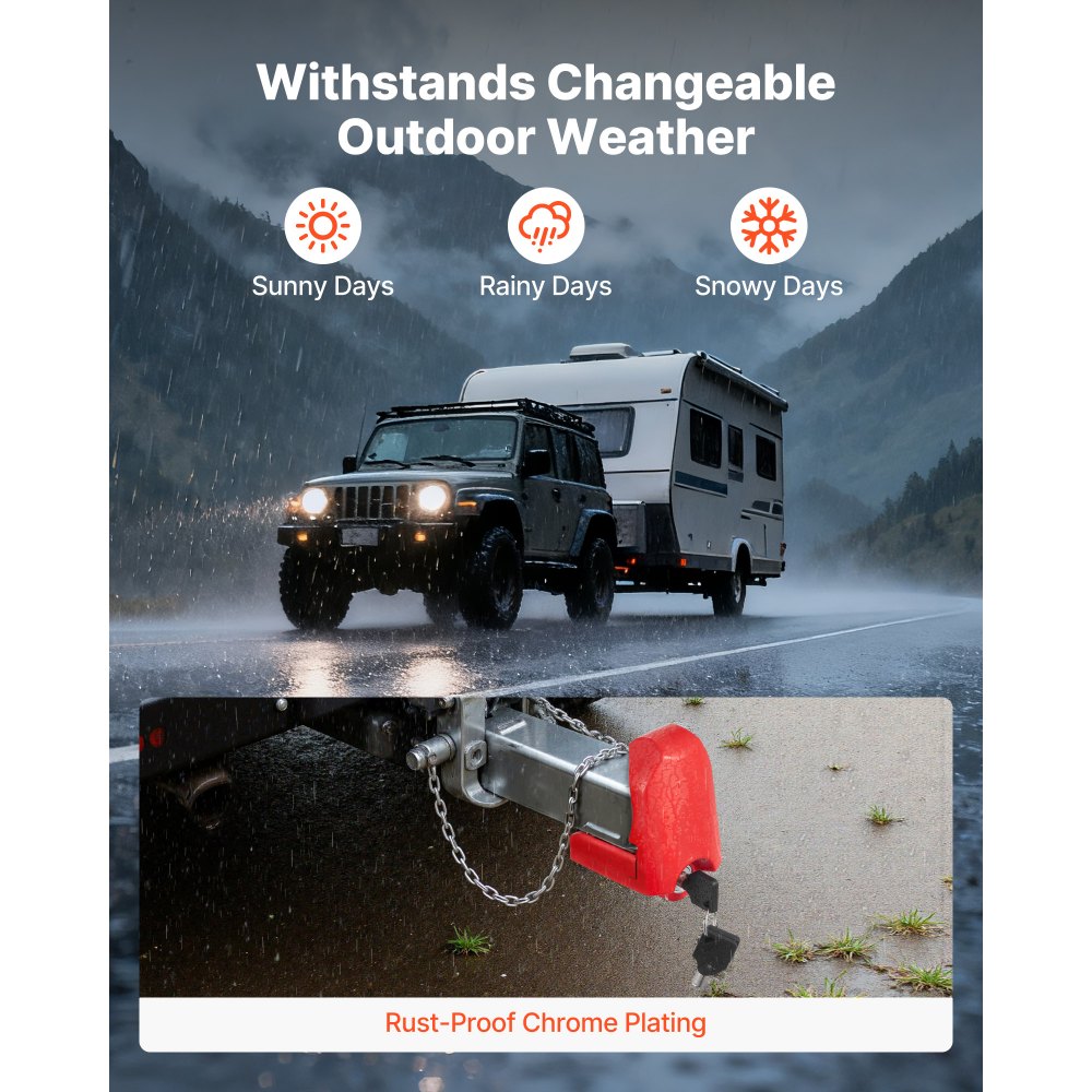Zámek tažného zařízení VEVOR, vhodný pro spojky 46 mm, 50,8 mm, 58,7 mm, odolný kulový zámek přívěsu s 3 klíči, odolný proti vypáčení a nárazu, vhodný pro obytné vozy, lodě, přívěsy, červený