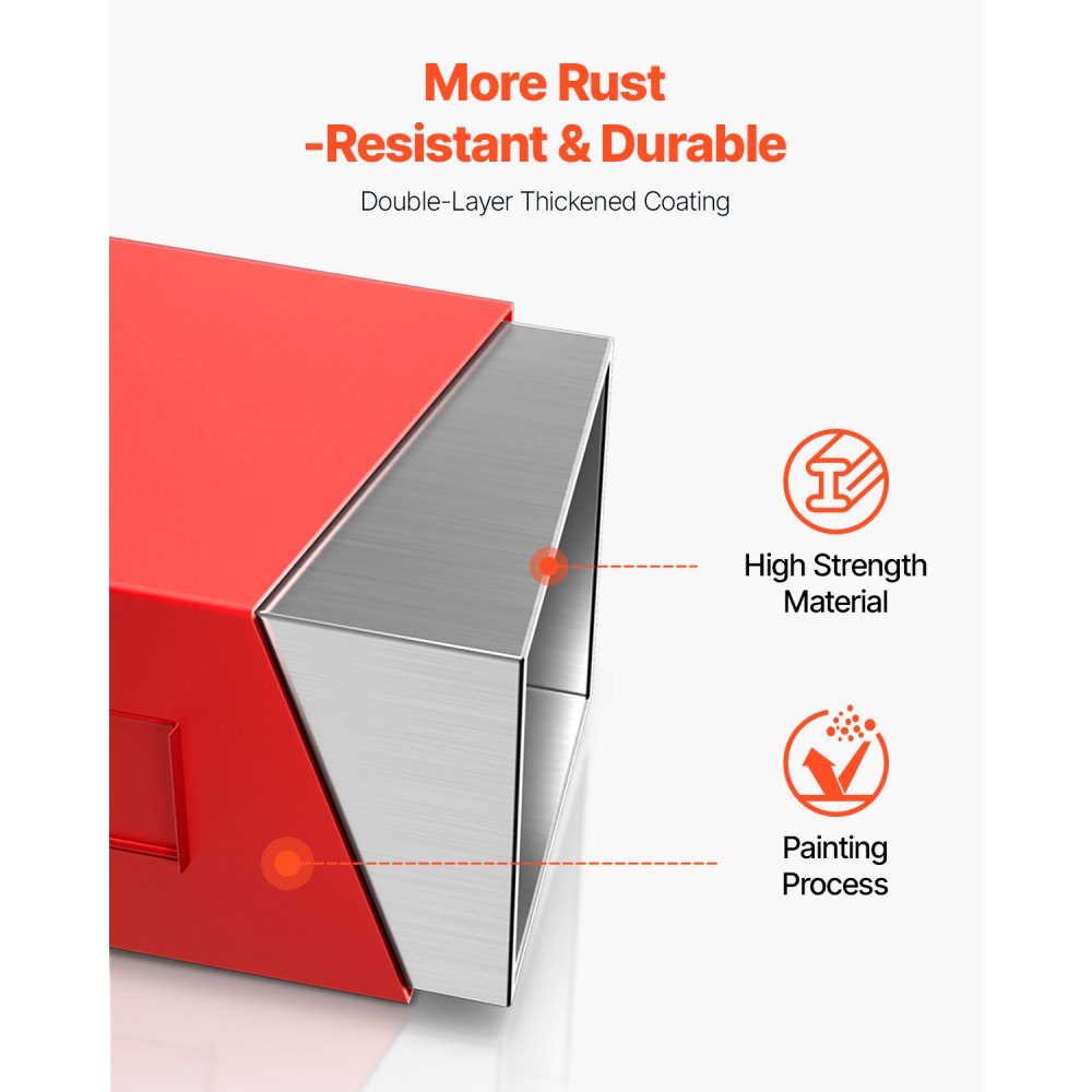 Zátěžový box VEVOR, 3bodový traktorový závěs kategorie 1 s nosností 800 liber, pro 2palcový závěsný upínač, vysoce odolná ocel, velkoobjemové příslušenství pro nakladač o objemu 4,3 ft³ s posuvnými dveřmi, červená