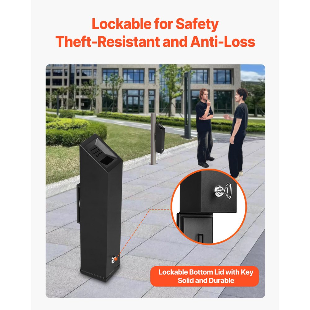 Snadné čištění: Jednoduše odemkněte spodní kryt klíčem a snadno vysypete nedopalky a popel. Kovový povrch venkovního popelníku se také snadno čistí – stačí jej otřít nebo opláchnout pro rychlou údržbu.