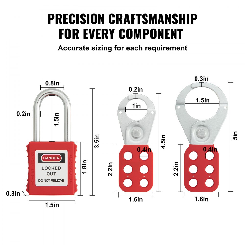 Bezpečnostní visací zámky průmyslové třídy: Vysoce kvalitní visací zámky ze sady pro elektrickou bezpečnost Loto jsou nevodivé a odolné proti korozi, každý se 2 klíči – jedním pro běžné použití a druhým jako náhradní. Klíče i tělo zámku jsou vyryty odpovídajícími kódy, což zajišťuje, že každý bezpečnostní visací zámek má jedinečný kód. V souladu s požadavky OSHA a přísně testovány, což zajišťuje řádnou kontrolu nebezpečné energie.