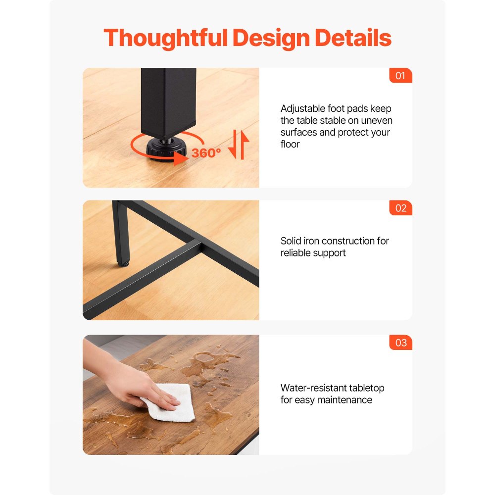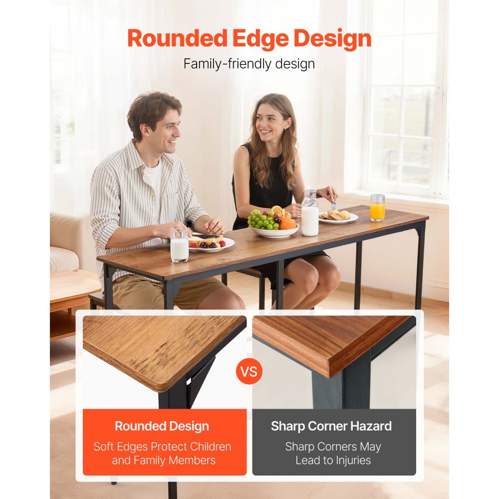 Barový stůl VEVOR, 1 ks kuchyňských barových stolů o šířce 1600,2 mm, vysoké jídelní stoly se zaoblenými hranami, obdélníkové kuchyňské stoly s vysokým vrchem na balkon, do obývacího pokoje, světle hnědá, černá, prodloužený horizontální design