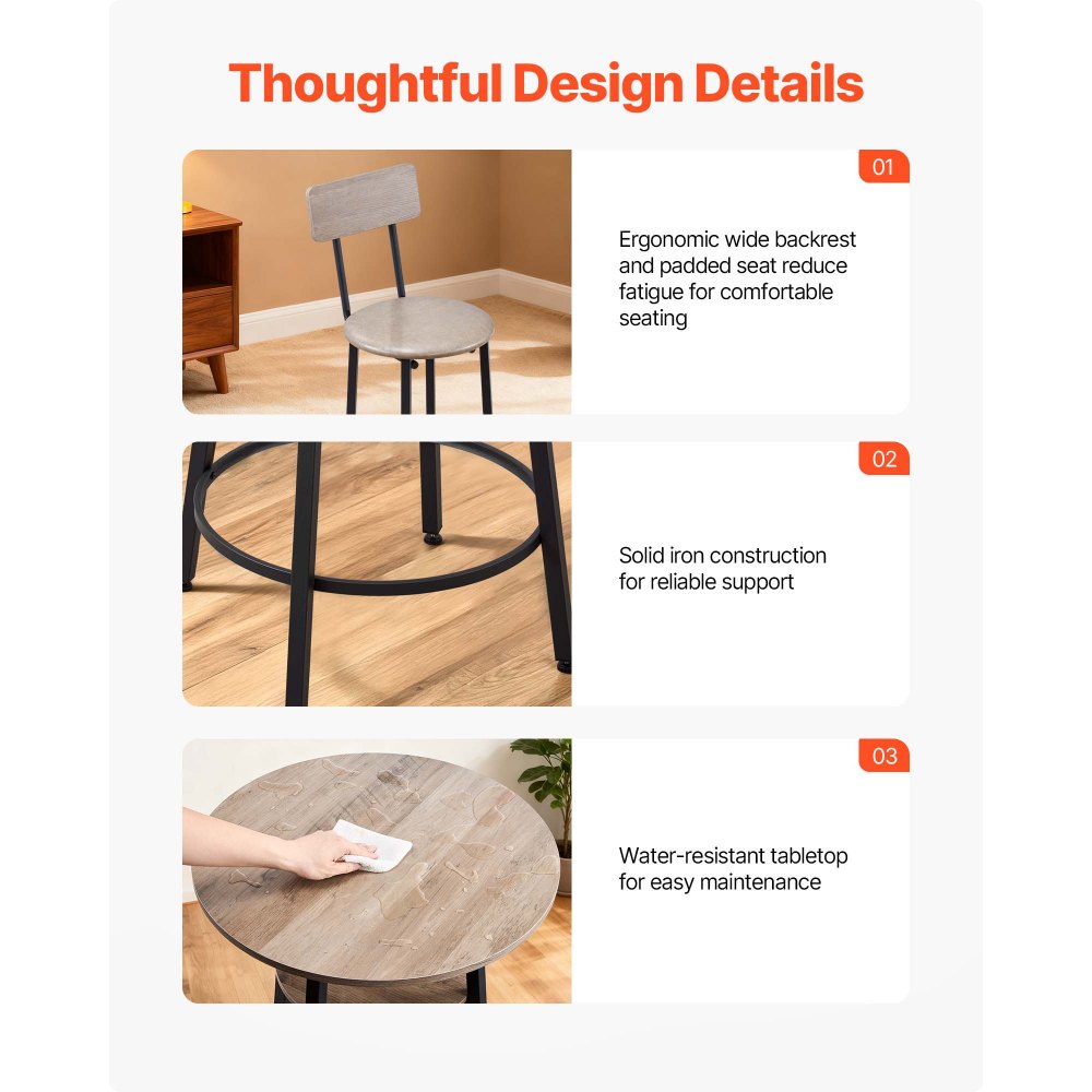 Barový stůl VEVOR, sada 3 barových stolů 596,9 mm, barové stoly a židle se zaoblenými rohy, kulatý hospodský stůl se dvěma stoličkami pro kancelářský stůl, snídaňový koutek, mini bary, světle šedá, černá | Kancelářské potřeby | Originalnitextil.cz