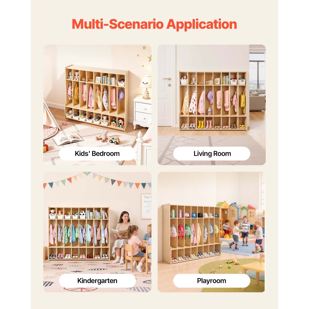 Určeno pro děti: Tato skříňka na kabáty pro batolata je ideální pro domácnosti, školky, školy a předškolní zařízení a poskytuje dostatek prostoru pro kabáty, boty, batohy a školní potřeby, takže je ideální pro herny, aktivity nebo učebny pro každodenní potřeby skladování.