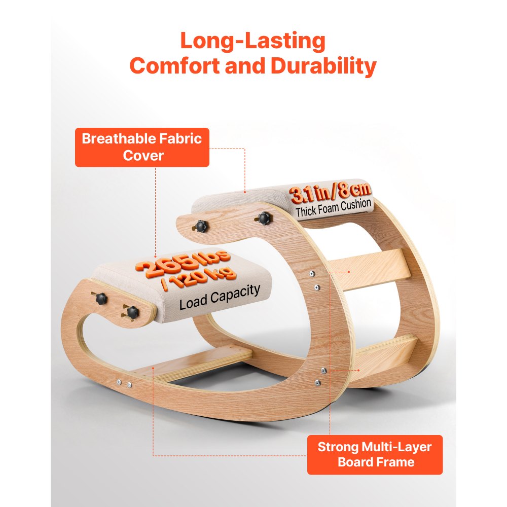 Ergonomická klečící židle VEVOR, dřevěná kolenní židle s nastavitelnými tlustými pěnovými polštáři a rámem z masivního dřeva, nastavitelná výška, úleva od bolesti krku nebo zad pro domácnost, kancelář nebo meditaci, béžová | Kancelářské potřeby | Originalnitextil.cz