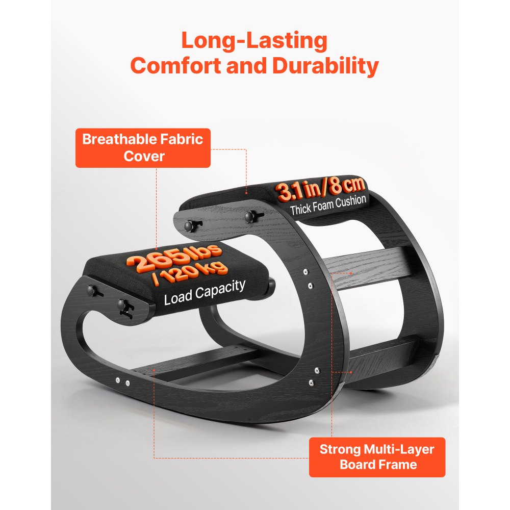 Ergonomická klečící židle VEVOR, dřevěná kolenní židle s nastavitelnými tlustými pěnovými polštáři a rámem z masivního dřeva, nastavitelná výška, úleva od bolesti krku nebo zad pro domácnost, kancelář nebo meditaci, černá | Kancelářské potřeby | Originalnitextil.cz