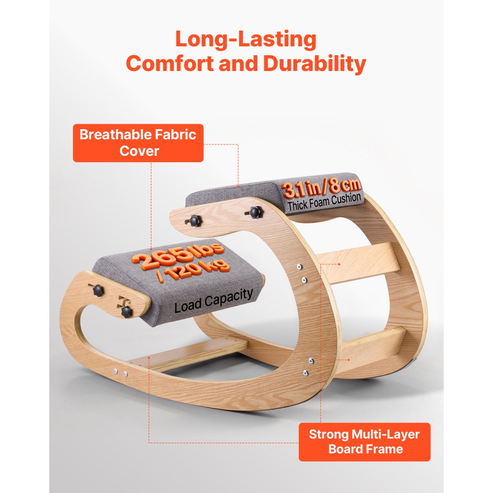 Ergonomická klečící židle VEVOR, dřevěná kolenní židle s nastavitelnými tlustými pěnovými polštáři a rámem z masivního dřeva, nastavitelná výška, úleva od bolesti krku nebo zad pro domácnost, kancelář nebo meditaci, šedá | Kancelářské potřeby | Originalnitextil.cz