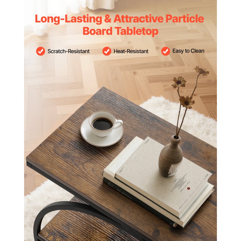 Moderní industriální styl: Tento odkládací stolek s deskou s přírodním dřevěným vzorem a hladkou, rafinovanou texturou je vyroben s geometrickým kovovým rámem pro jedinečný industriální nádech. Je ideální pro odpočinkové chvíle s přáteli a rodinou.