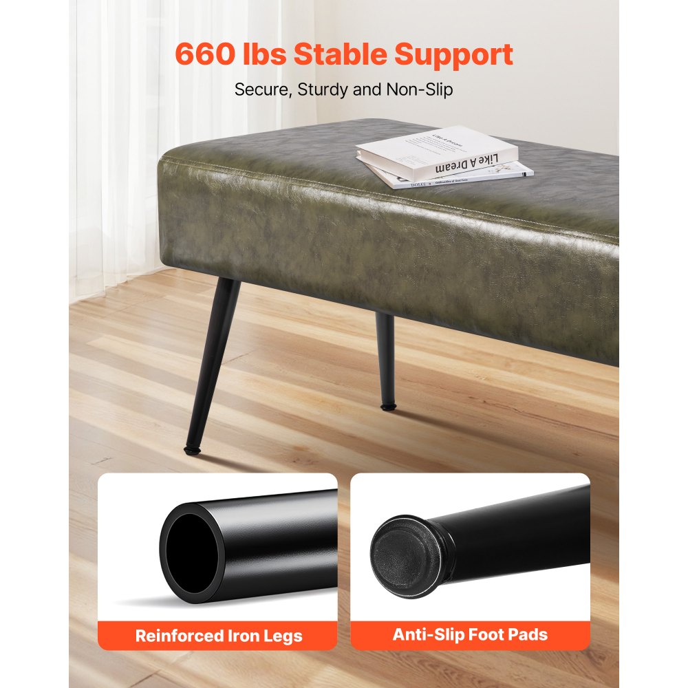 Kožená lavice do ložnice VEVOR, lavice z umělé kůže s kovovými nohami a prošíváním do předsíně, čalouněná lavice na boty, moderní lavice u postele do obývacího pokoje, jídelny, chodby, zelená | Kancelářské potřeby | Originalnitextil.cz