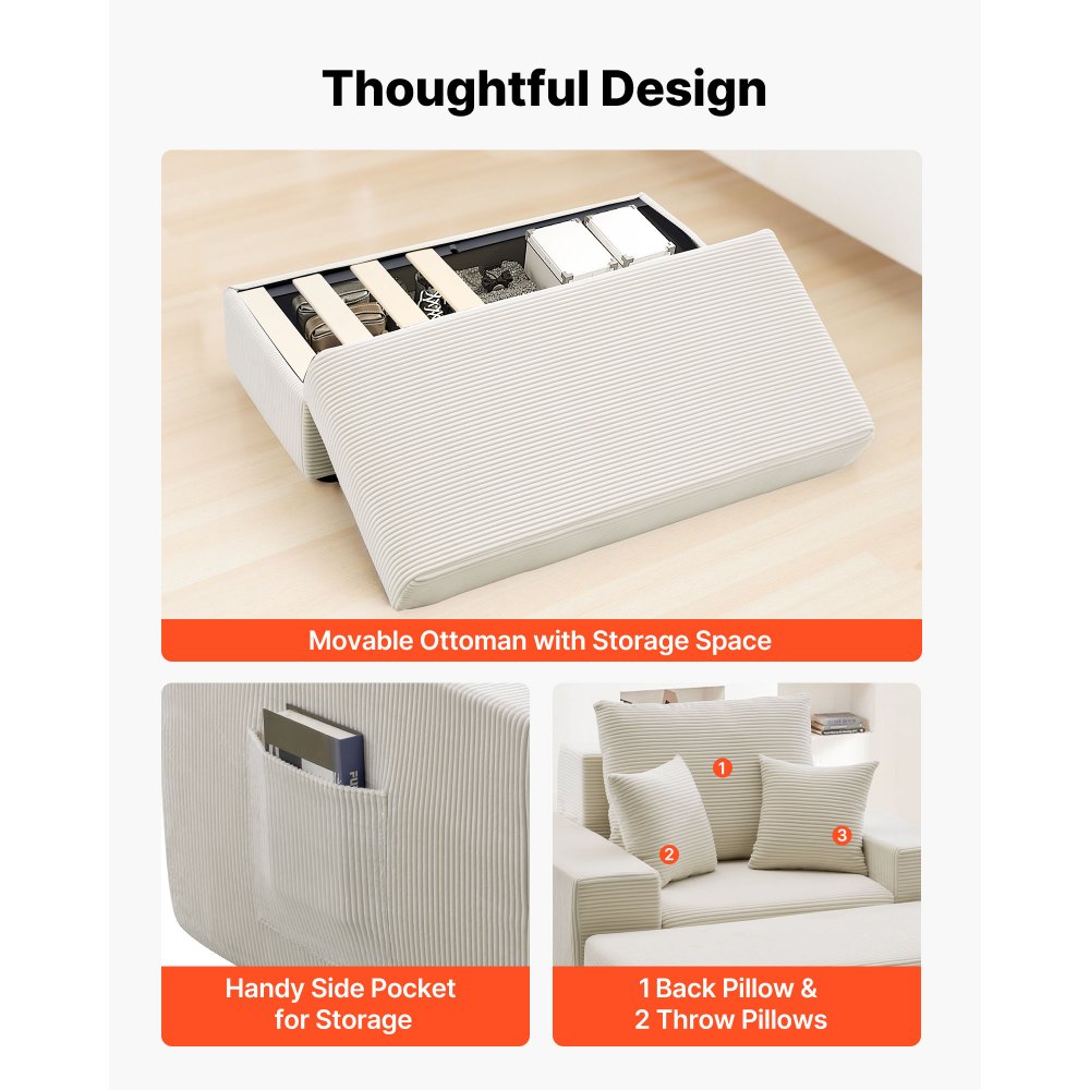 Lenoška VEVOR, modulární lenoška bez kostí o šířce 1115 mm do interiéru, nadměrné manšestrové čtecí křeslo s polštáři a područkami, hluboké sedadlo, rozkládací pohovka do obývacího pokoje a ložnice, béžová | Kancelářské potřeby | Originalnitextil.cz