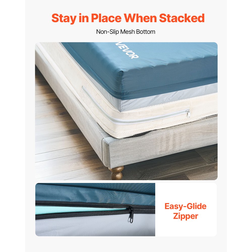 Voděodolný a skvrnám odolný potah: Prémiový voděodolný nylonový potah odolává polití a skvrnám, takže se matrace vaší zdravotnické postele snadno čistí. Spodní část na zip usnadňuje výměnu a prodyšná tkanina udržuje věci v chladu.