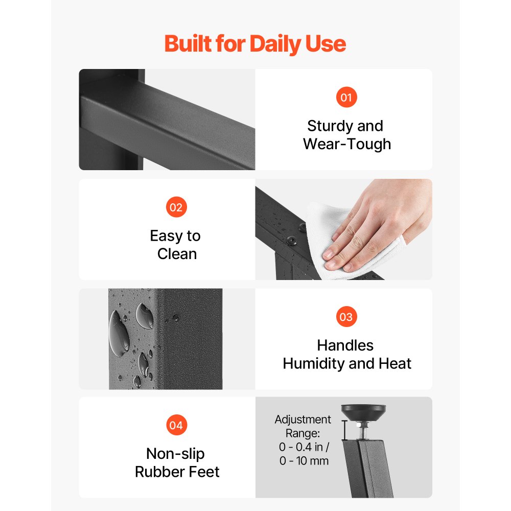 Navrženo pro odolnost: Každá noha stolu je vyrobena z vysokopevnostní uhlíkové oceli a má práškově lakovaný povrch, který je odolný proti otiskům prstů a snadno se čistí. Nastavitelné vyrovnávací nožičky v rozteči 0–0,4 palce / 0–10 mm vám pomohou snadno vyrovnat stůl.