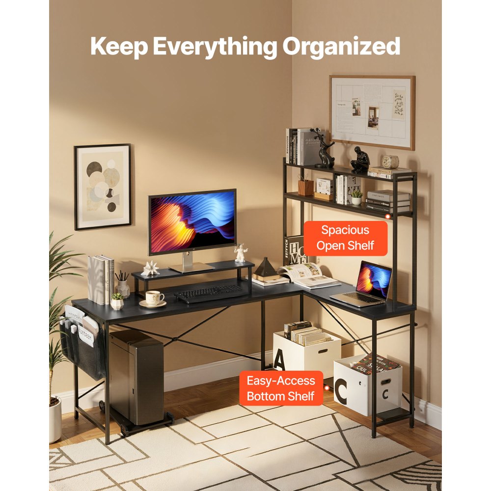 Počítačový stůl VEVOR ve tvaru L, 1,7m oboustranný rohový herní stůl se stojanem na monitor a pohyblivým stojanem na procesor, moderní stylový počítačový stůl, robustní pracovní stanice pro domácí kancelář - snadná montáž | Kancelářské potřeby | Originalnitextil.cz