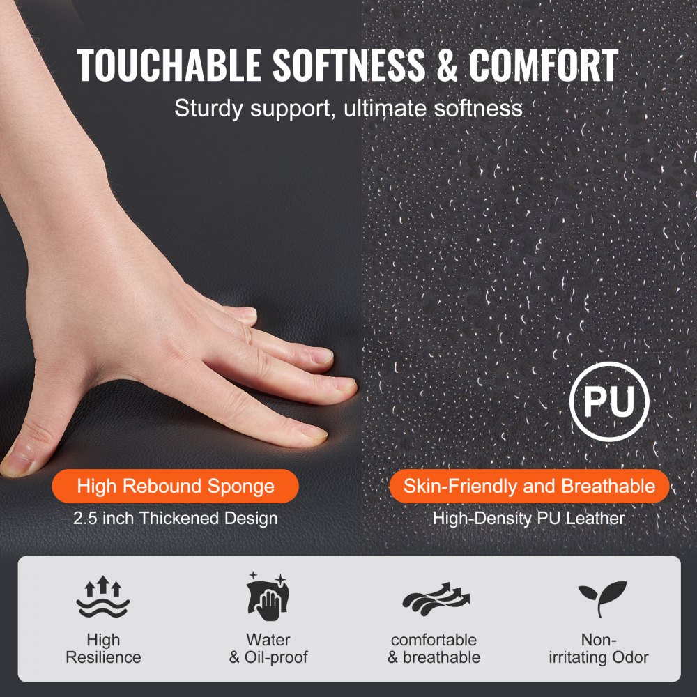 Měkký a pohodlný: Extra široký přenosný masážní stůl s prostornou 30palcovou deskou o šířce poskytuje klientům dostatek prostoru pro roztažení. 2,5palcová houba s vysokou hustotou si zachovává svůj tvar a měkká PU kůže nabízí pohodlný pocit šetrný k pokožce. Nastavitelná ruční paleta dává vašim rukám odpočinek a nabízí maximální péči a pohodlí.