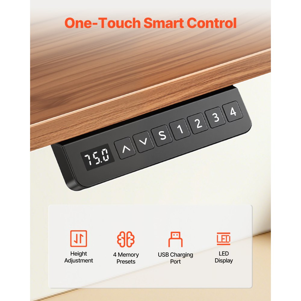 Inteligentní ovládací panel: Tyto nastavitelné nohy stolu poskytují 4 přednastavené polohy v paměti s LED displejem pro přesné sledování výšky. Podporuje převod jednotek palce/cm a pro větší pohodlí je vybaven portem USB.