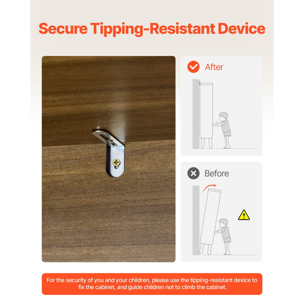 Bezpečné a stabilní: Naše komoda v boho stylu má dobrou nosnost a stabilitu. Unese až 91 kg. Její pojistka proti převrácení zajišťuje větší bezpečnost a stabilitu. Před použitím prosím pojistku proti převrácení nainstalujte.