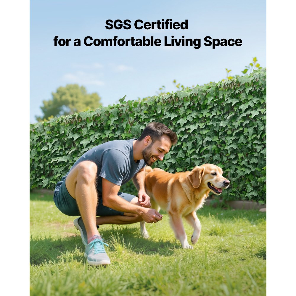 Vhodné do interiéru i exteriéru: Tento umělý zimozeleňový panel, testovaný společností SGS na kvalitu a vhodný pro domácnosti s domácími mazlíčky, se skvěle hodí jako dekorativní zelené pozadí. Před instalací doporučujeme panely vyvětrat v dobře větraném prostoru.