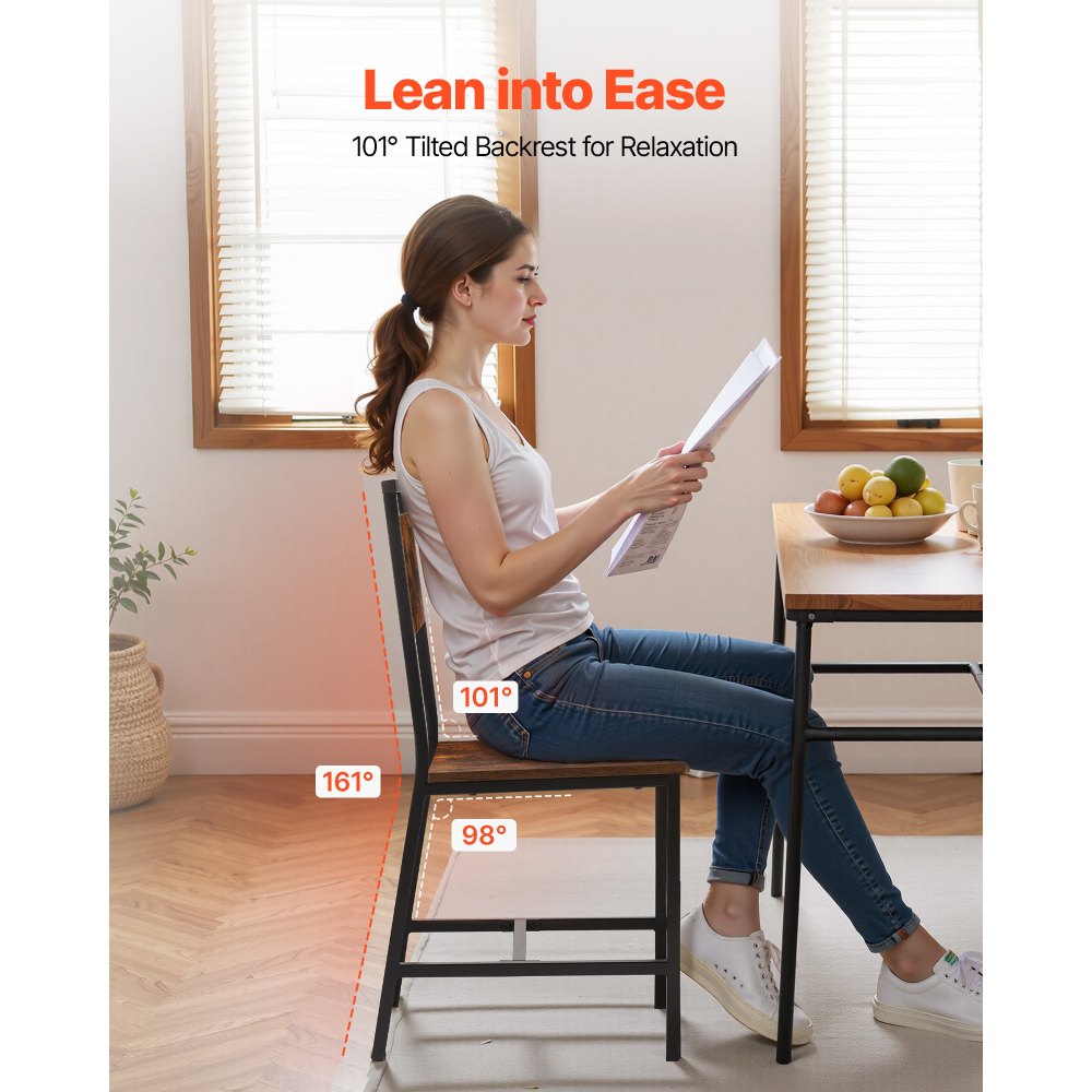 Sada 4 jídelních židlí VEVOR, dřevěné židle ke stolu s kovovým rámem a opěradlem, snadno sestavitelná kožená boční židle, moderní farmářská židle z ořechového dřeva do kuchyně a obývacího pokoje, rustikální hnědá a černá | Kancelářské potřeby | Originalnitextil.cz