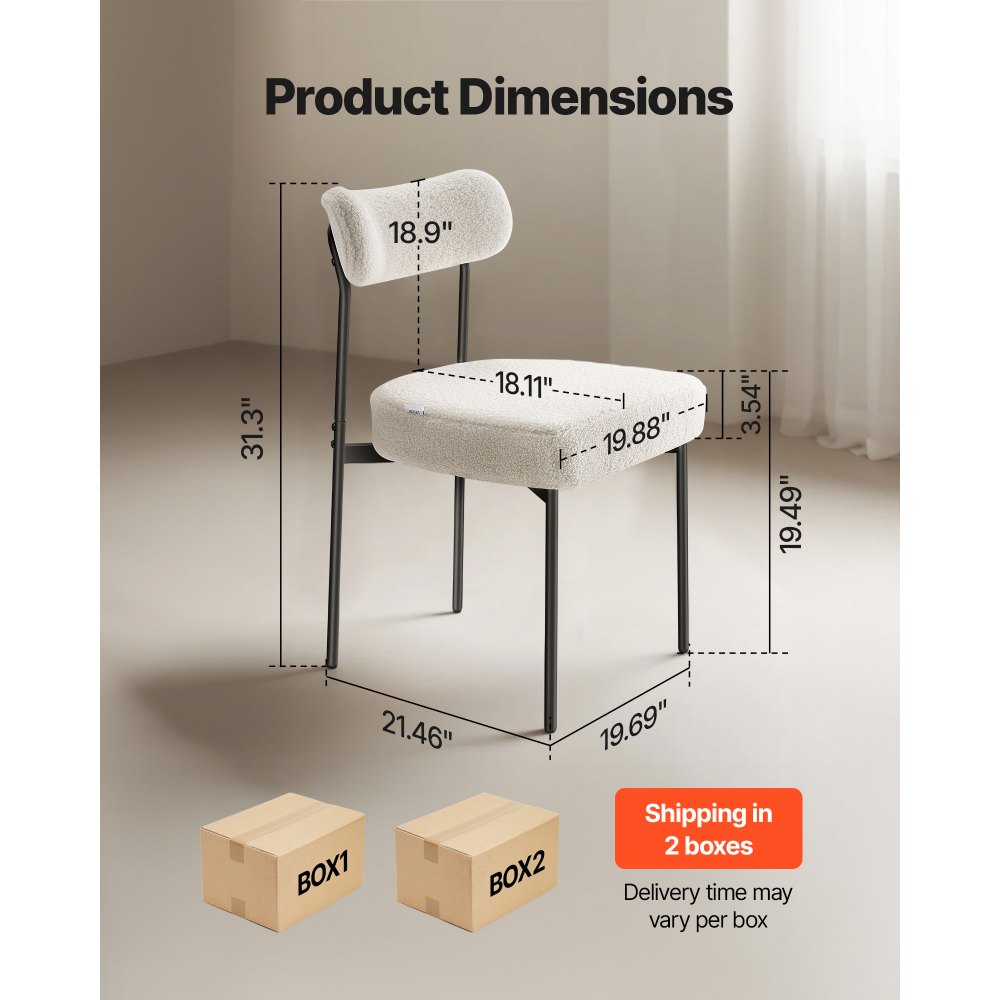 Sada 6 jídelních židlí VEVOR Boucle, moderní šerpa židle v polovině století, čalouněná boční židle k jídelnímu stolu, prostorově úsporná bílá kuchyňská židle se zaobleným opěradlem a černými kovovými nohami