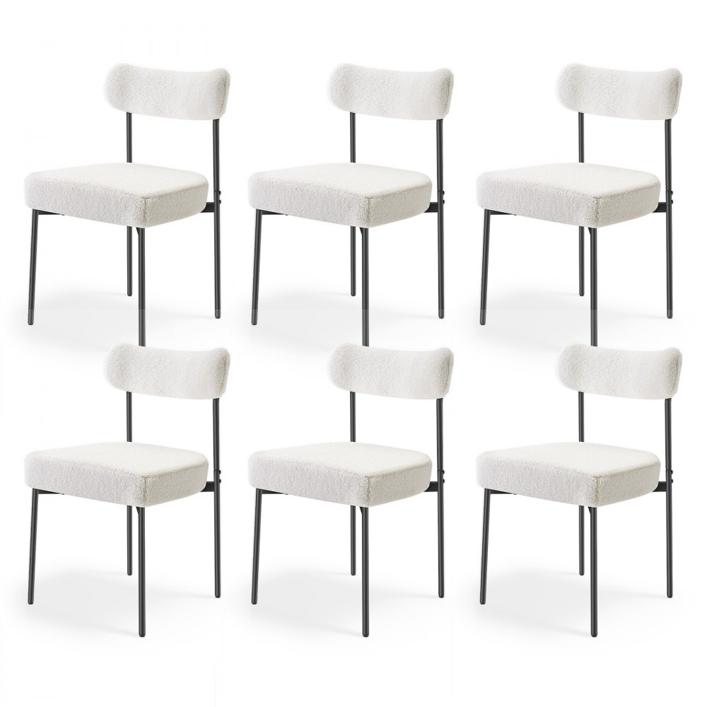 Sada 6 jídelních židlí VEVOR Boucle, moderní šerpa židle v polovině století, čalouněná boční židle k jídelnímu stolu, prostorově úsporná bílá kuchyňská židle se zaobleným opěradlem a černými kovovými nohami | Kancelářské potřeby | Originalnitextil.cz