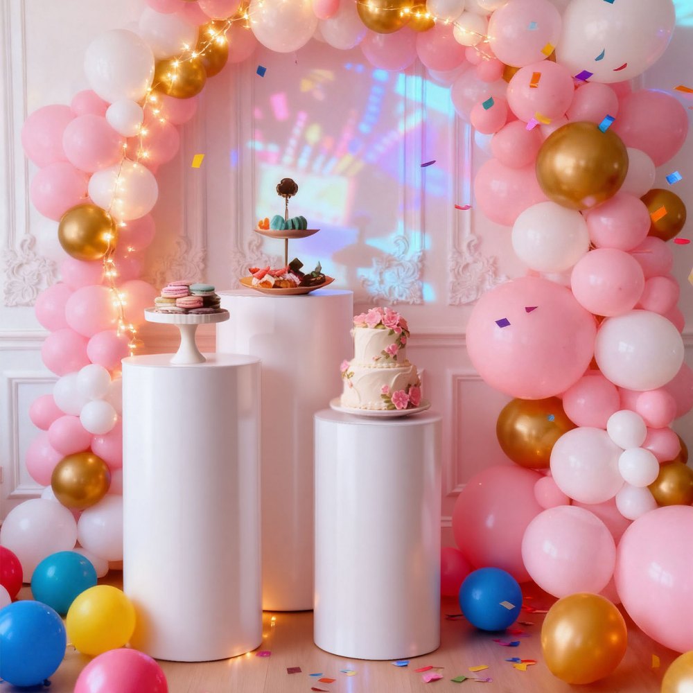 Stylová stabilní konstrukce: Tento válcovitý podstavec kombinuje odolnost s elegancí a unese až 15 kg dekorativních předmětů. Jeho čiré kulaté sloupy a moderní design se hladce začlení do jakéhokoli prostředí a vylepší svatby, večírky a domácí interiéry bez námahy.