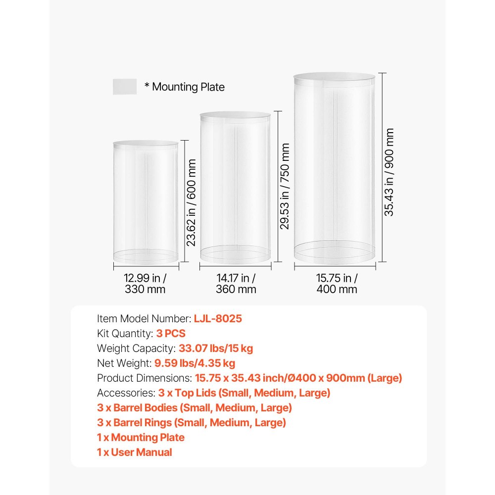 Svatební květinový stojan VEVOR, 3 ks 60/75/90 cm kulatý válcový podstavec, průhledný podstavec s průhledným akrylovým víkem, válcové podstavce na svatbu, večírek, narozeniny, uměleckou dekoraci | Kancelářské potřeby | Originalnitextil.cz