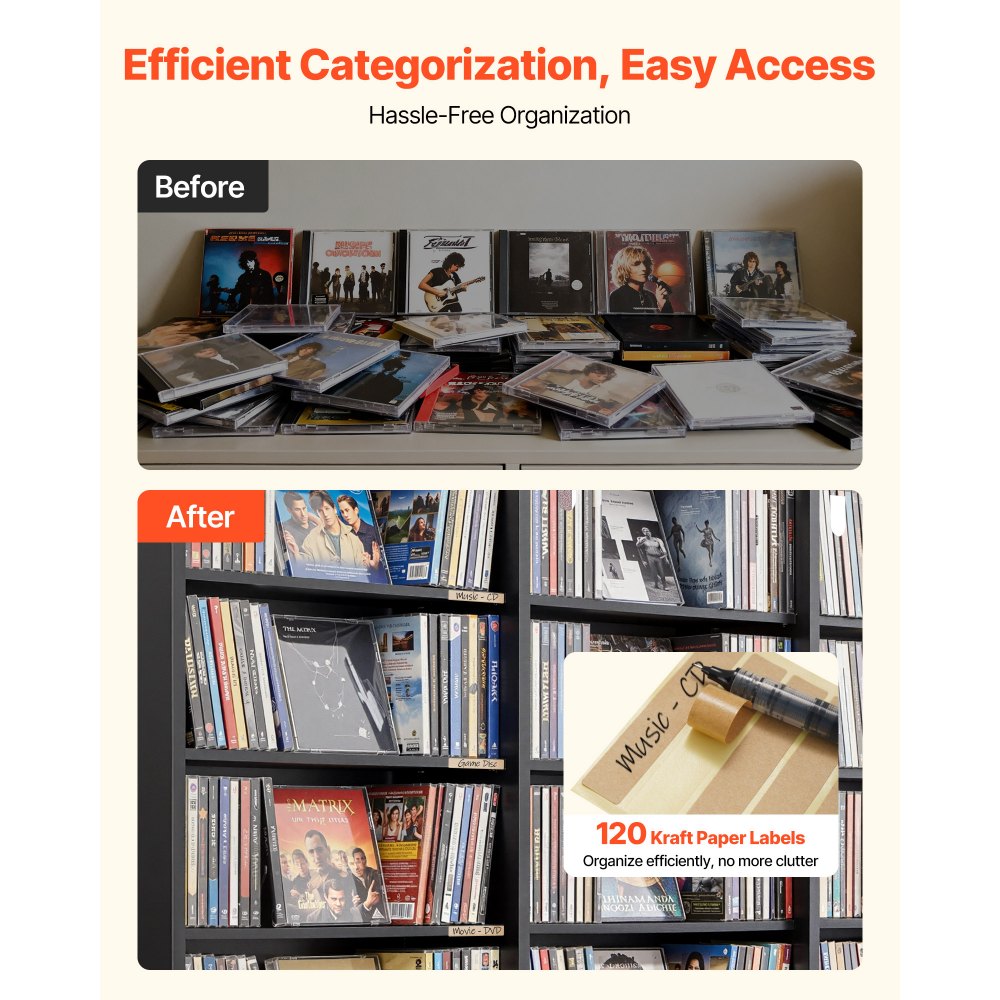 Přehledné a organizované úložné prostory: Tato skříňka na CD obsahuje samolepky z kraftového papíru, takže si můžete každou přihrádku označit podle sebe. Snadno tříděte a identifikujte sběratelské předměty na první pohled, takže vaše sbírka médií bude vždy úhledně uspořádaná.