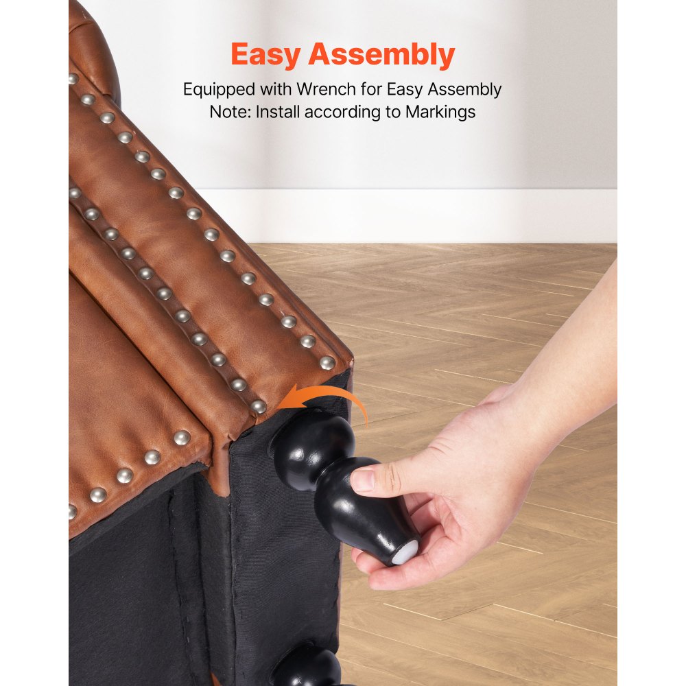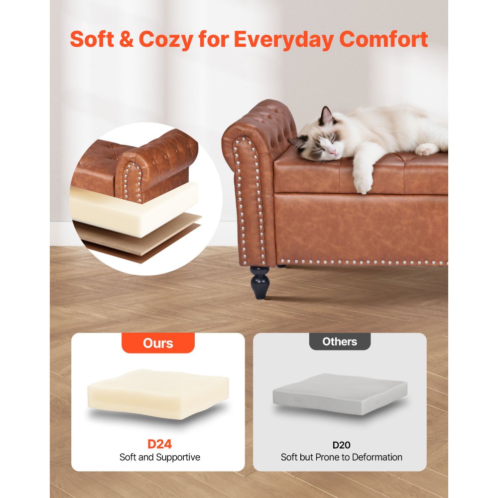 Úložný taburet VEVOR s knoflíky, lavice z umělé kůže s válcovanými područkami a nohami z masivního dřeva, moderní botník do předsíně, čalouněné lavice na konec postele do obývacího pokoje, jídelny, hnědá | Kancelářské potřeby | Originalnitextil.cz