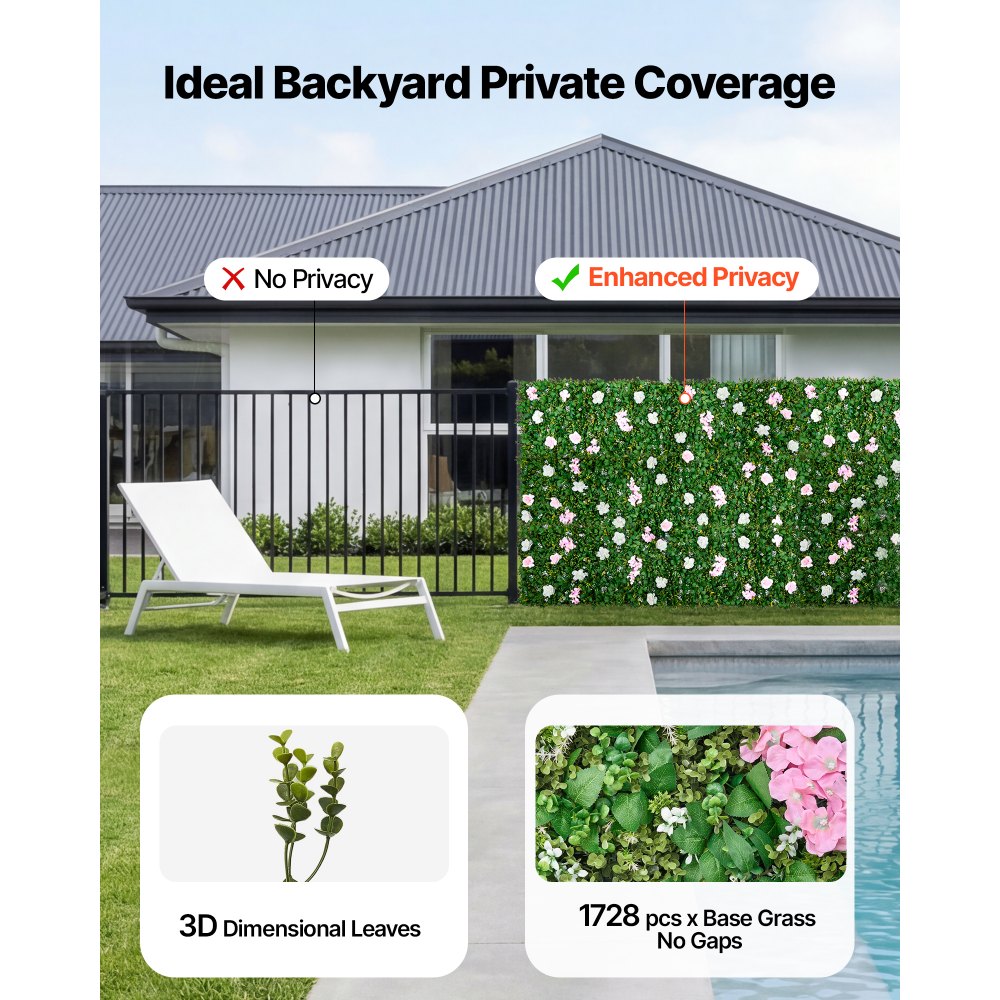 2 panely pro flexibilní pokrytí: Každý panel z umělého buxusu měří 2 x 8 stop. Po spojení sada pokrývá až 32 čtverečních stop jako pozadí travnaté stěny. Součástí balení jsou stahovací pásky pro snadné upevnění a panely lze zastřihnout nůžkami tak, aby se přizpůsobily vašemu prostoru.