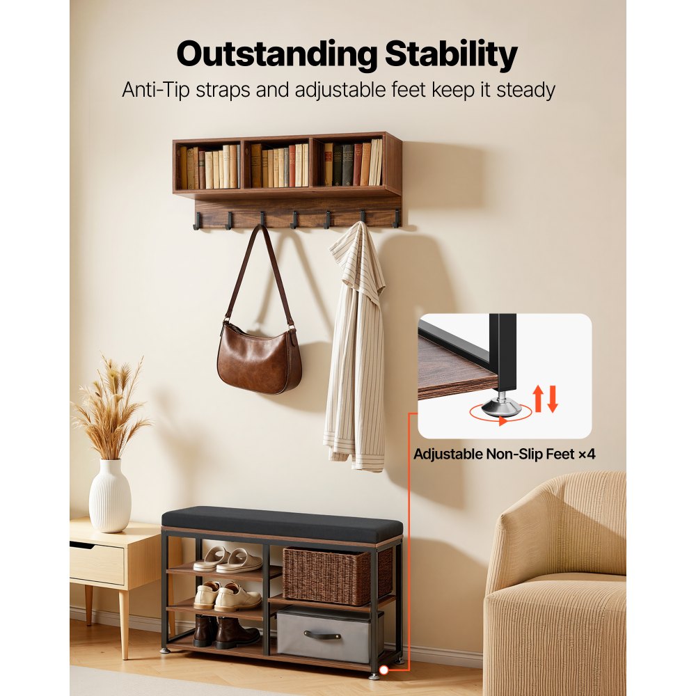 Věšák na kabáty VEVOR s botníkem, sada 3 věšáků na boty s háčky a policí, ocelový rám, držák na úložný prostor do předsíně, ložnice, šatny, kanceláře, rustikálně hnědý | Kancelářské potřeby | Originalnitextil.cz