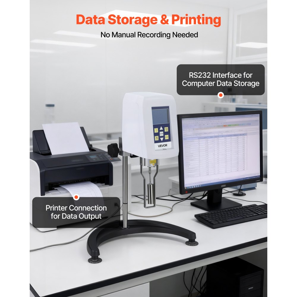 Digitální rotační viskozimetr VEVOR, 10–100 000 mPa.s(cP), přesnost ±2 %, digitální rotační viskozimetr 100–240 V se 4 rotory a teplotní sondou, LCD displej, laboratorní viskozimetr pro testování kapalin | Laboratoř | Originalnitextil.cz
