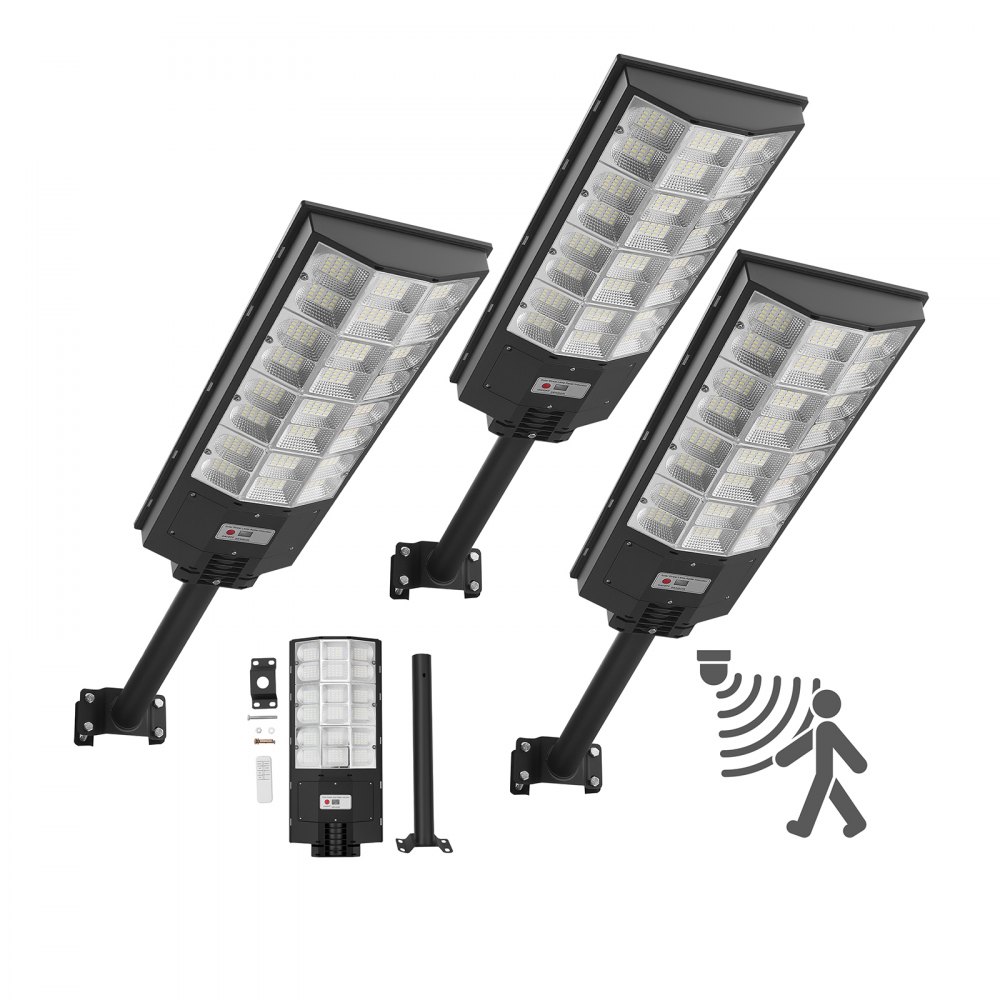 Solární pouliční osvětlení VEVOR 8000W, venkovní, 450000LM, osvětlení komerčních parkovišť od soumraku do úsvitu, LED bezpečnostní svítidlo proti zaplavení s pohybovým senzorem, vodotěsné venkovní osvětlení IP65, pro příjezdovou cestu a dvůr, balení po 3 kusech | Osvětlení | Originalnitextil.cz