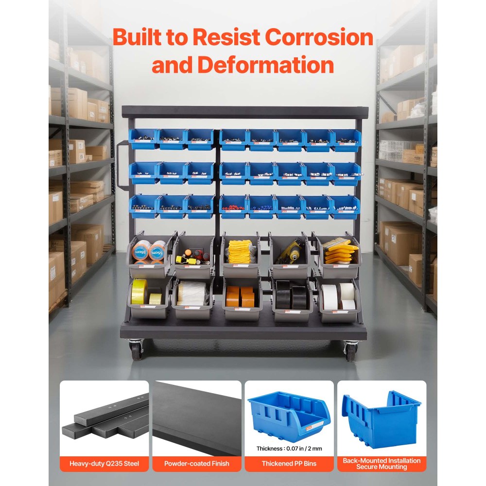 5patrový oboustranný regál na kolečkové přihrádky, 68 plastových přihrádek, oboustranný organizér na díly s kolečky, mobilní organizér na nářadí do garáže, skladu, kanceláře, restaurace, učebny, kuchyně
