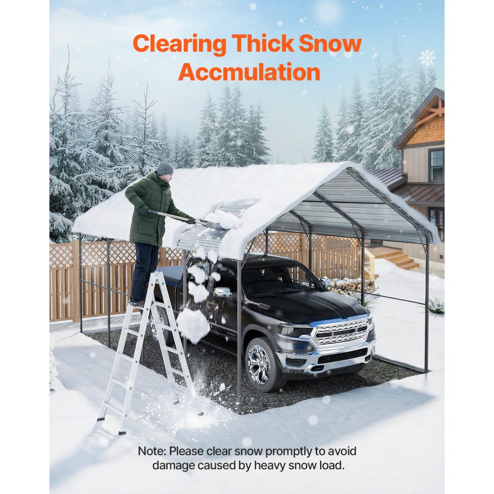 Pevná konstrukce: Venkovní přístřešek pro auto má zesílený rám s dodatečnými ocelovými výztuhami na střeše a po stranách. Tento ocelový přístřešek je vyroben z 2palcových vysokopevnostních ocelových trubek s vypalovanou smaltovanou povrchovou úpravou a nabízí výjimečnou odolnost proti korozi a trvanlivost, což zajišťuje dlouhodobou stabilitu ve sněhu a větru – ideální pro přístřešky pro auta do sněhu nebo jiných náročných podmínek.